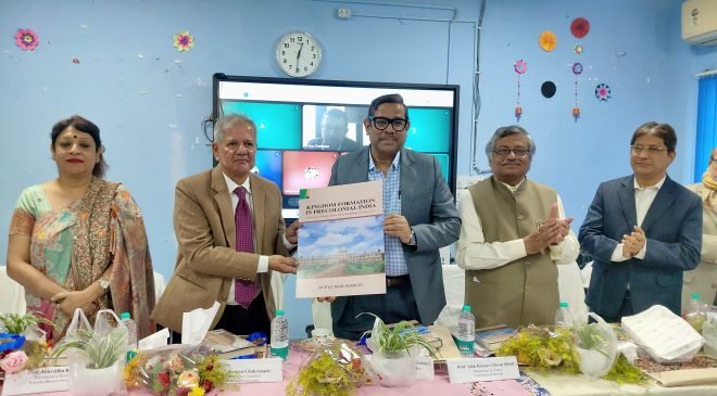 দুবেলাঃ ২রা ডিসেম্বর বাঁকুড়া বিশ্ববিদ্যালয়ের ইতিহাস বিভাগে আয়োজিত “Locating Modernity: Displaying Time In The Region” বিষয়ক আন্তর্জাতিক সেমিনারের প্রধান আকর্ষণ ছিল মাননীয় উপাচার্য অধ্যাপক ড. রূপ কুমার বর্মণ-এর লেখা—Kingdom Formation in Precolonial India: A Historical Study on the Koch Kingdom, c. 1540-1773 (Delhi, Primus Books, 2025) গ্রন্থের আনুষ্ঠানিক উদ্বোধন। ভূমিকা ও উপসংহার বাদে গ্রন্থটি সাতটি অধ্যায়ে বিন্যস্ত। লেখক এই গ্রন্থে সুনিপুণভাবে সেই সময়কালের প্রাক্-ঔপনিবেশিক ভারতের রাজ্যগঠন প্রক্রিয়ার ইতিহাসকে স্বতন্ত্র দৃষ্টিভঙ্গী থেকে ব্যাখ্যা করেছেন। ভারতীয় উপমহাদেশে রাষ্ট্র গঠন প্রক্রিয়াটি কয়েক দশক ধরে ইতিহাসবিদ এবং সমাজবিজ্ঞানীদের মধ্যে গবেষণার প্রধান বিষয় হয়ে দাঁড়িয়েছে।…
