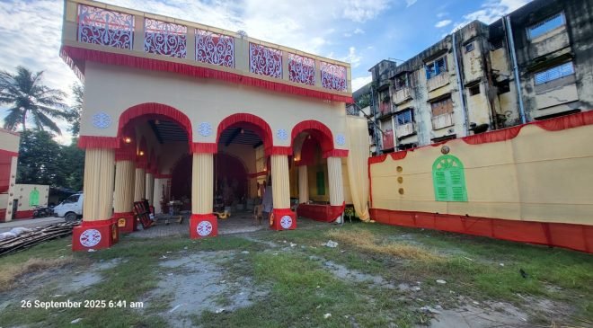 দুবেলাঃ বাংলার দুর্গোৎসব মানেই শুধু ধর্মীয় আচার নয়, এ এক সামাজিক ও সাংস্কৃতিক উৎসব। সময়ের সঙ্গে সঙ্গে থিম ও কল্পনার ভিন্ন ভিন্ন রূপে মণ্ডপসজ্জা পেয়েছে বিশেষ মাত্রা। সেই ধারাতেই এ বছর মহেশতলার সম্পা মির্জা নগর হাউসিং এস্টেট ফেজ–১ পূজা পদার্পণ করছে তাদের ৪৯তম বছরে। আরও পড়ুনঃ ভারতের হয়ে বিশ্বে ‘শান্তির বার্তা’ বঙ্গ শিল্পীর মোট ৬৮০টি ফ্ল্যাট-এর বাসিন্দাদের মিলিত উদ্যোগে এই পূজা আজ মহেশতলার অন্যতম দর্শনীয় আয়োজন। প্রতিবছরের মতো এ বছরও থিমে থাকছে অভিনবত্ব—“পুরনো জমিদার বাড়ি”। জমিদারি আবহে প্রবেশদ্বার দিয়ে দর্শনার্থীরা প্রবেশ করবেন পূজামণ্ডপে। তখনই তাঁদের মনে হবে যেন তাঁরা পা রেখেছেন বাংলার শতবর্ষ…