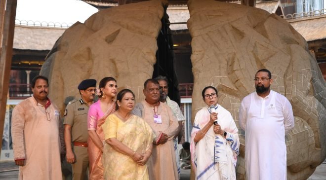 বৃষ্টি ভেজা বিকেলে শারদ উৎসবের সূচনা মুখ্যমন্ত্রীর, কটাক্ষ বিরোধী দলনেতার!