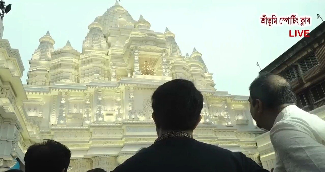 দুবেলা, রিয়া বিশ্বাস: নবমীতে শ্রীভূমি স্পোর্টিং ক্লাবের পুজোমণ্ডপে দেখা গেল এক অনন্য দৃশ্য।প্রত্যেকবছরই নতুন চমক থাকে শ্রীভূমি স্পোটিং ক্লাব।এবছরও তার ব্যাতিক্রম নয়। পুজো প্রাঙ্গনে দর্শণার্থীদের নজরকারা ভিড়।দেবী দর্শনের ভিড়ের পাশাপাশি মানুষের ভিড় জমল এক ঝলক দেখতে প্রিয় মহারাজকে। কলকাতার মহারাজ সৌরভ গঙ্গোপাধ্যায় নবমীর দিন হাজির হন শ্রীভূমির আকাশছোঁয়া আলোকসজ্জার প্যান্ডেলে।